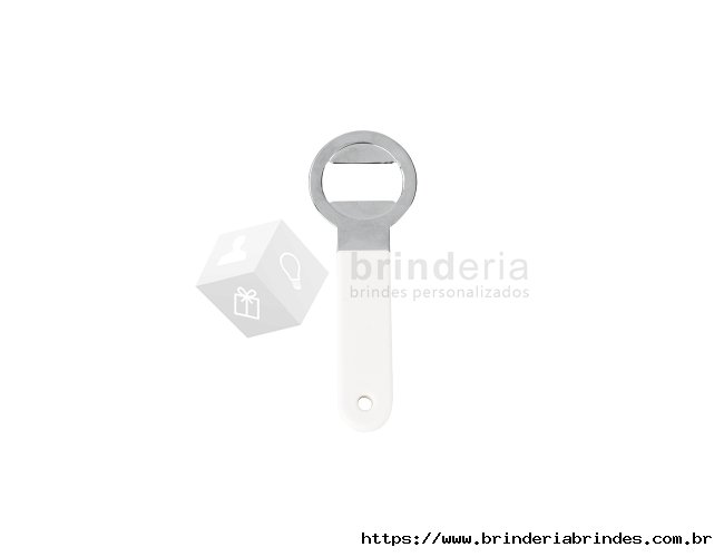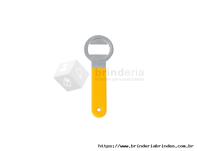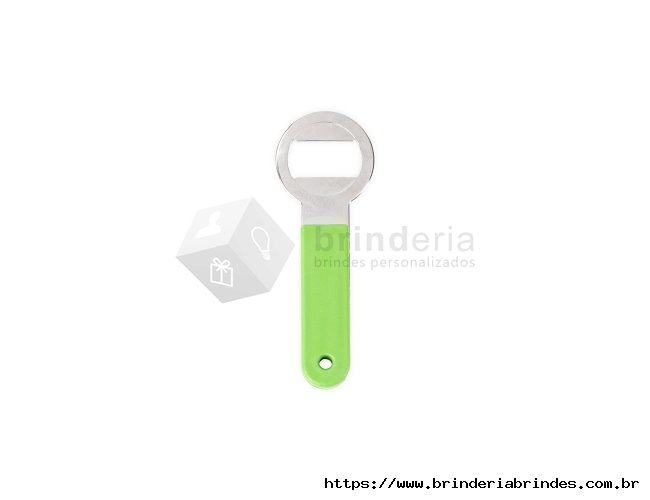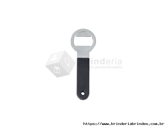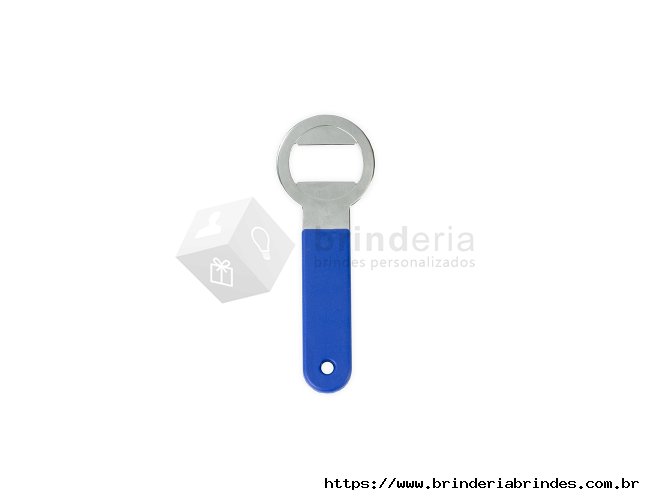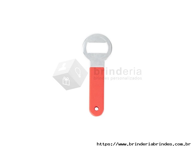 Abridor de garrafas com argola em aço carbono e cabo com revestimento em plástico ABS.