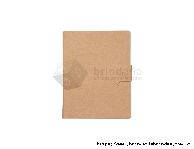 Bloco de anotações ecológico com autoadesivos, feito em kraft. Contém cinco autoadesivos com aproximadamente 25 folhas e dois blocos com aproximadamente 25 folhas amarelas.