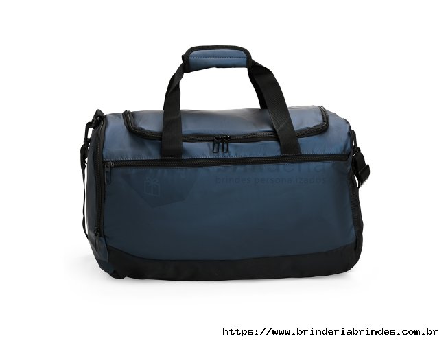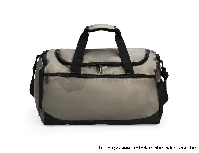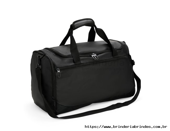Bolsa em couro sintético impermeável, com detalhes em malha e capacidade de até 36 litros. Apresenta três compartimentos em diferentes tamanhos, incluindo espaço tênis, além de bolso lateral em tela de nylon com elástico. Possui duas alças de mão com suporte de velcro e alça transversal.