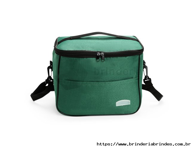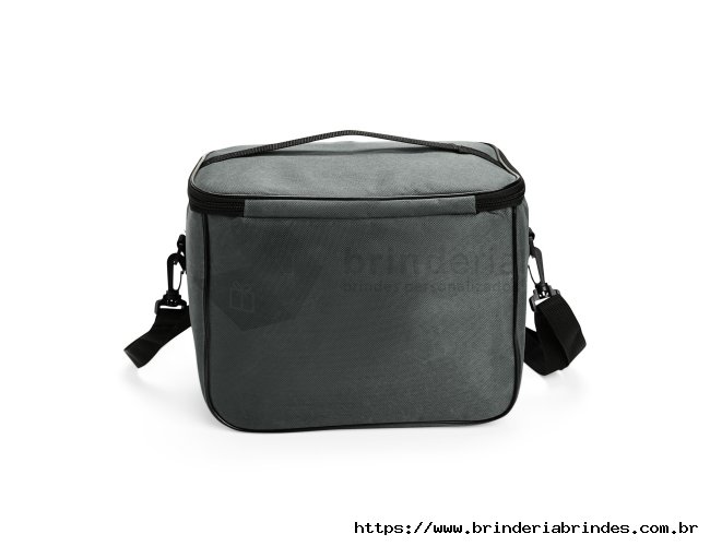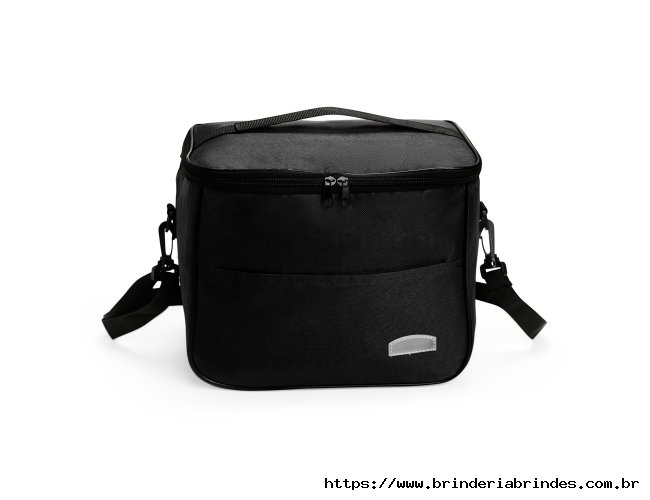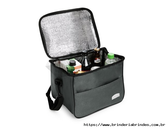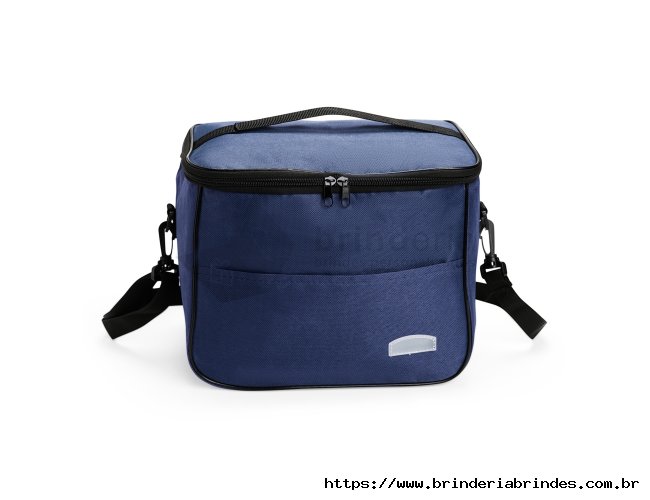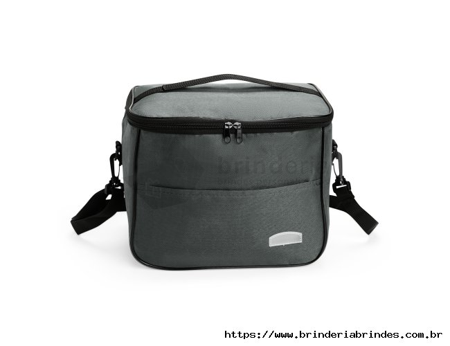 Bolsa térmica feita em Oxford resistente à água, com fechamento em zíper e capacidade de até 13 litros. Possui revestimento térmico em folha de alumínio, bolso frontal externo e duas alças: uma fixa localizada na tampa e outra transversal removível.