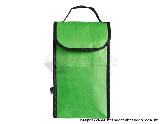 Bolsa térmica de rPET com capacidade de 4 litros com bolso frontal. Feita a partir de materiais recicláveis.