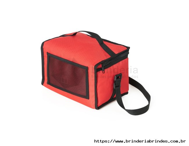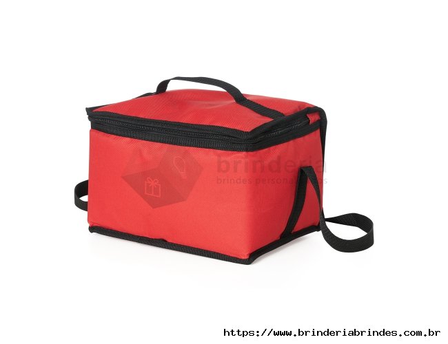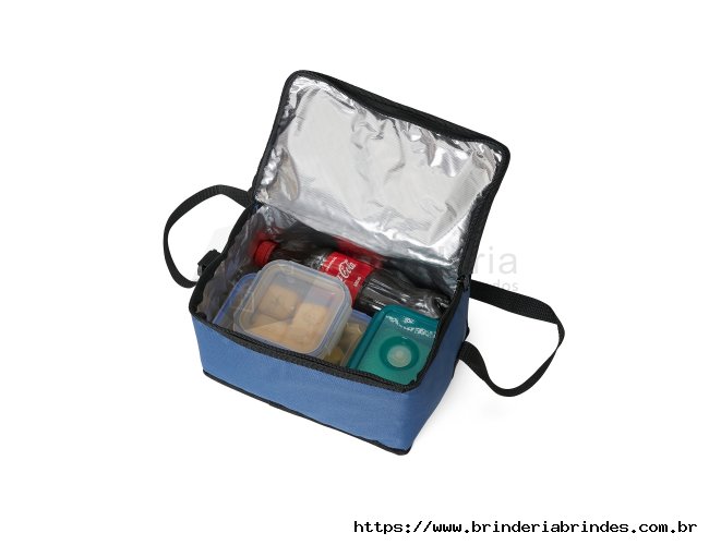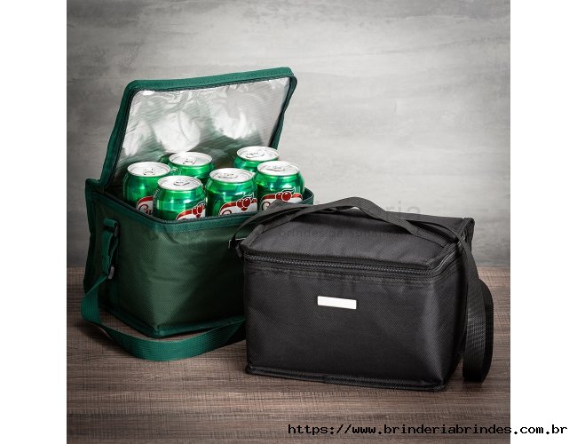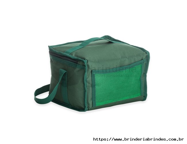 Bolsa térmica 8 litros em nylon com bolso traseiro externo de malha, duas alças para mãos, sendo uma delas ajustável.Parte interna com revestimento térmico, acompanha plaquinha para personalização avulsa.