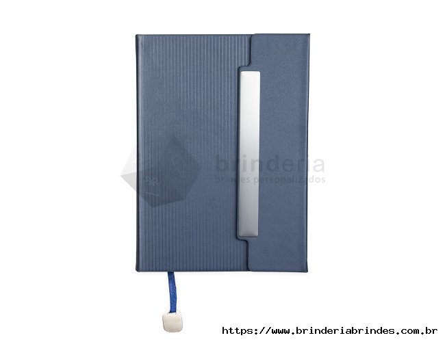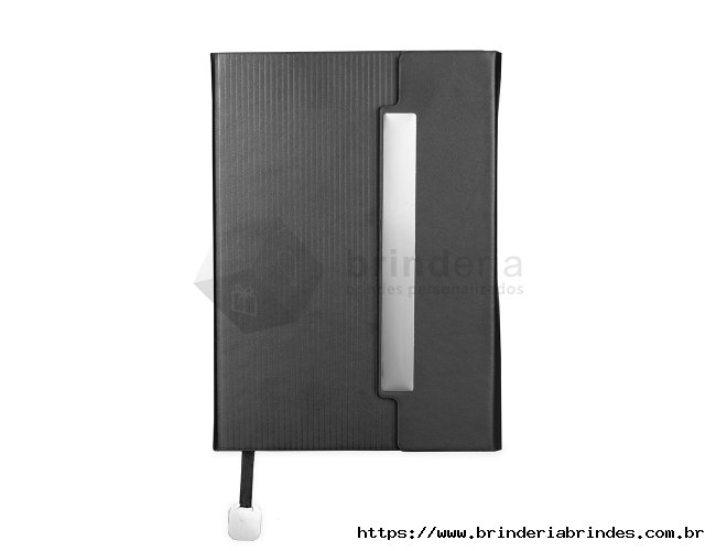 Caderneta com capa em couro sintético levemente texturizada, marca-páginas em fita de cetim com plaquinha metálica decorativa, aba de fecho magnético com placa metálica e cerca de 96 folhas marfim pautadas.