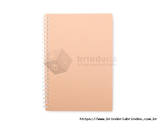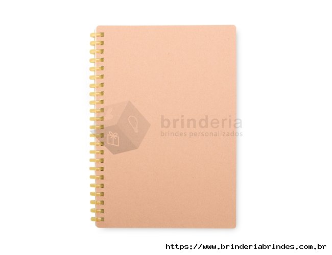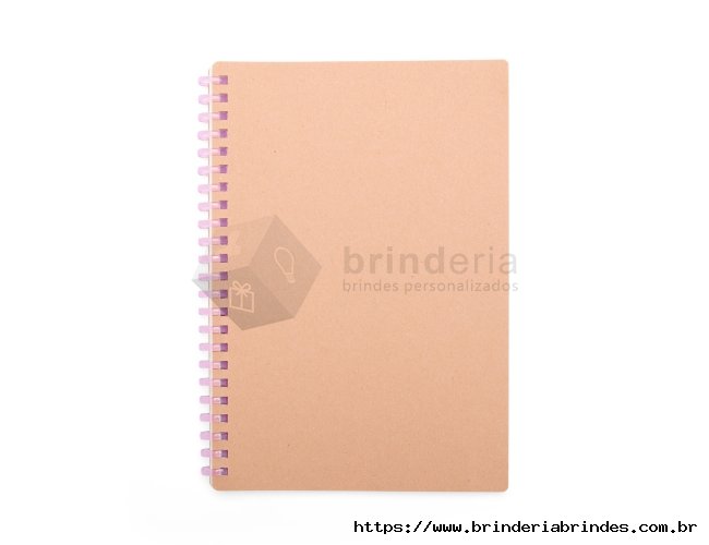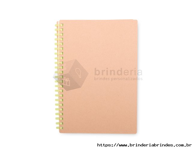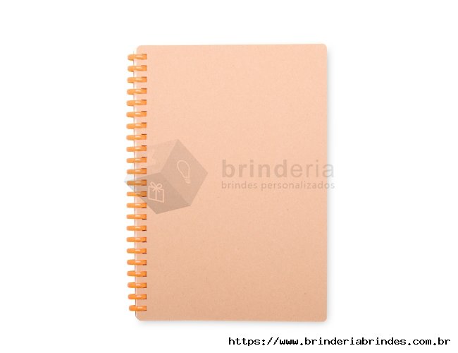 Caderno com capa em kraft com encadernação em espiral de plástico. Possui cerca de 80 folhas com pautas.
