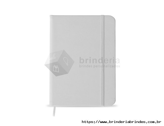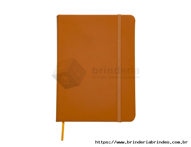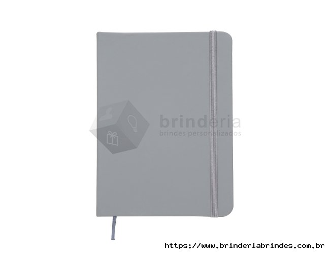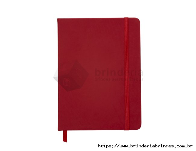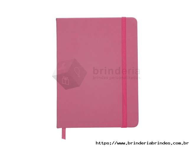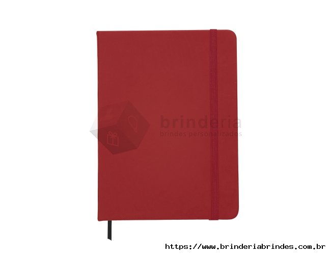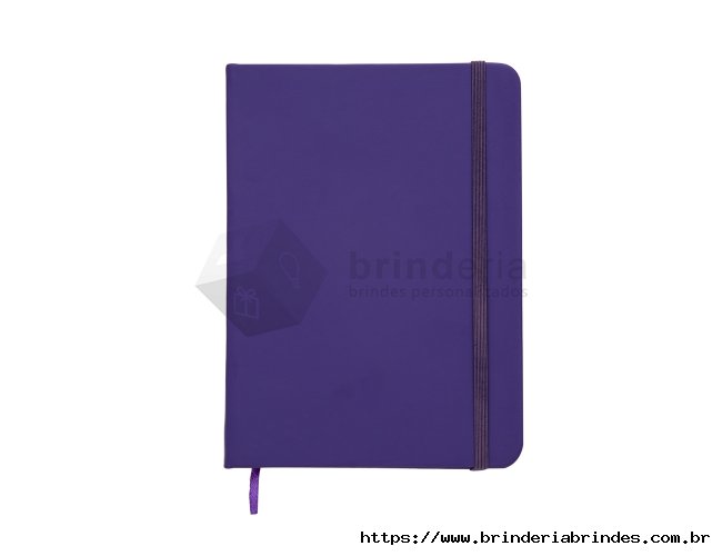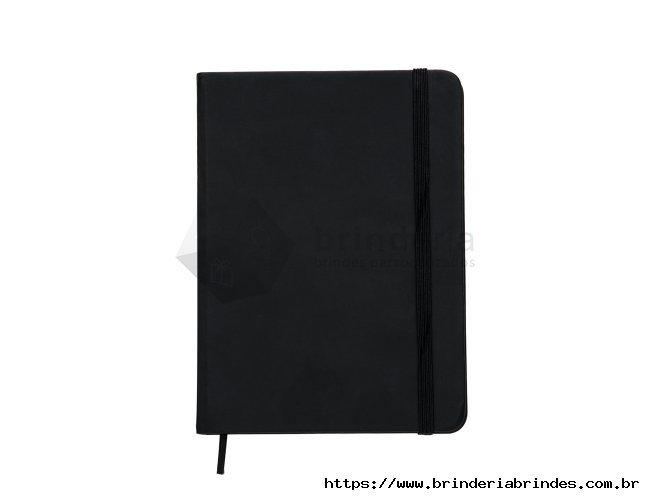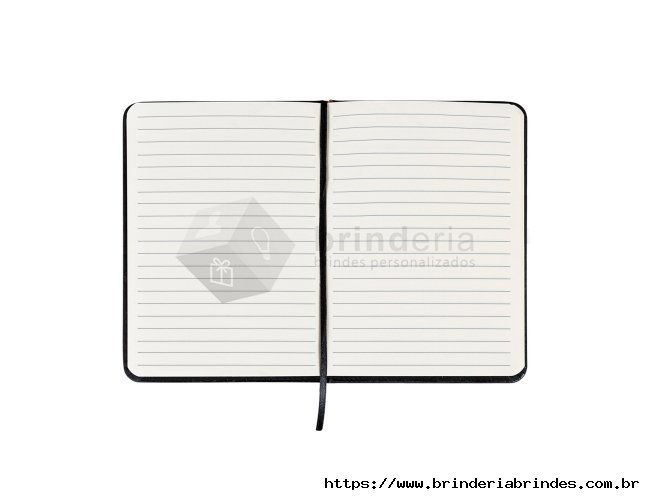 Caderneta tipo Moleskine com pauta com elástico para lacre e marcador de página em cetim com pauta.