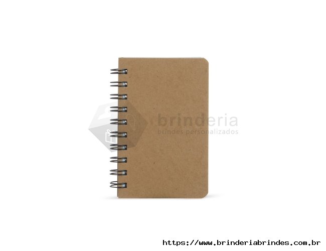 Caderno capa dura em kraft com wire-o. Contém aproximadamente 100 folhas brancas sem pauta.