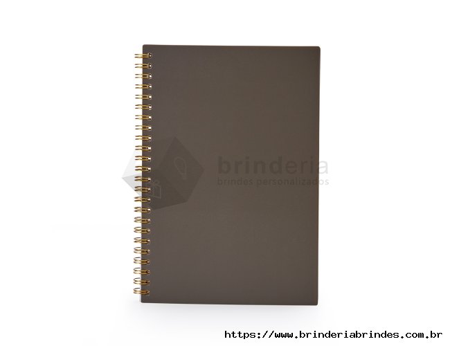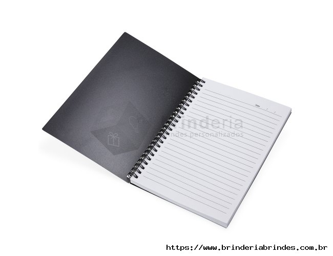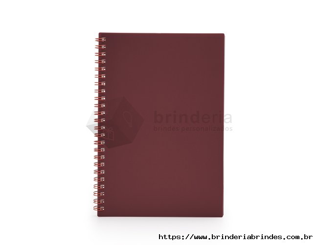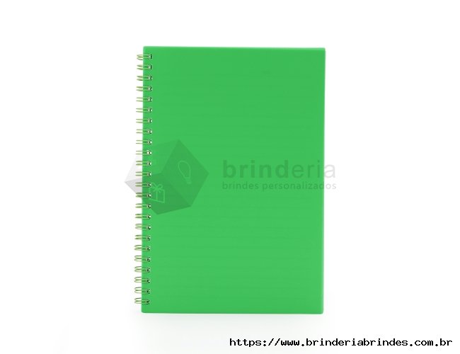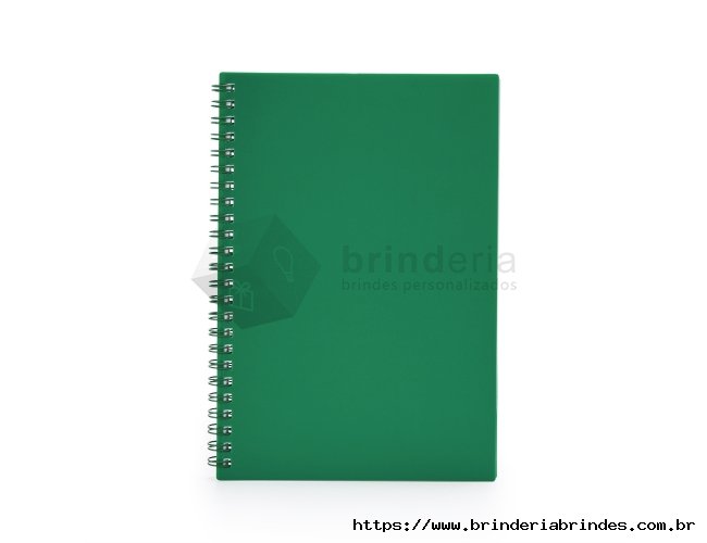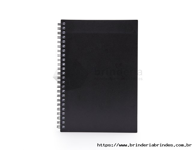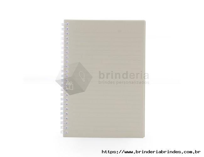 Caderno A5 plástico com wire-o metálico. Capa em PP, contém aproximadamente 80 folhas brancas com pauta.