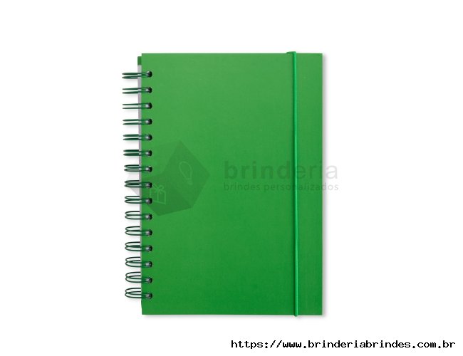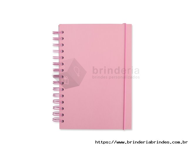Caderno com capa dura em couchê, encadernação wire-o, marcador de páginas em fita de cetim e elástico para fechamento. Conta com aproximadamente 160 folhas brancas com pauta.