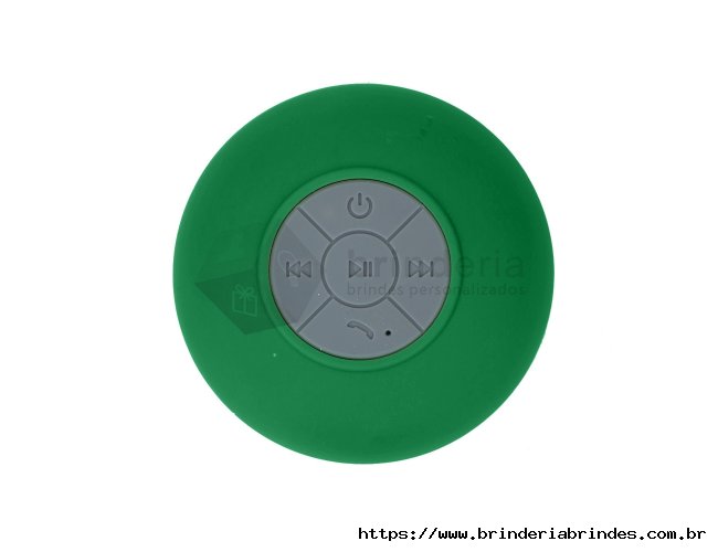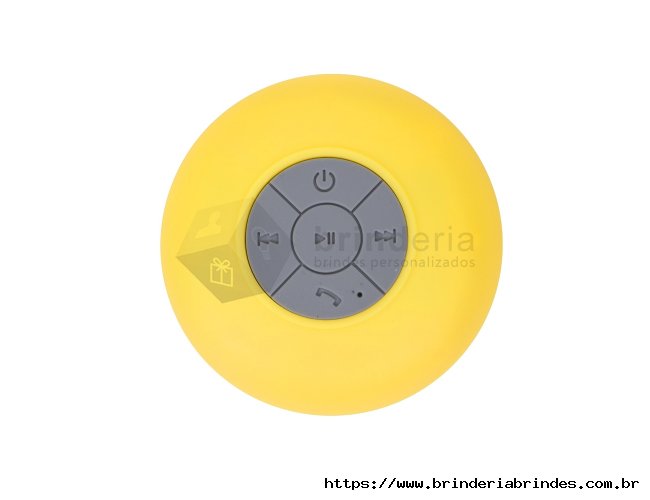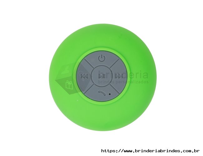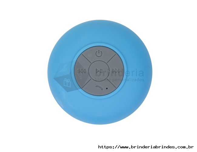 Caixa de Som Multimídia à prova D’Água emborrachada com ventosa(pode ser removida). Possui play/pause no centro e botão com desenho de telefone deve ser apertado para atender ligações. Compátivel com Iphone, Ipad, Ipod, aparelhos de celular e tablets. Acompanha cabo.