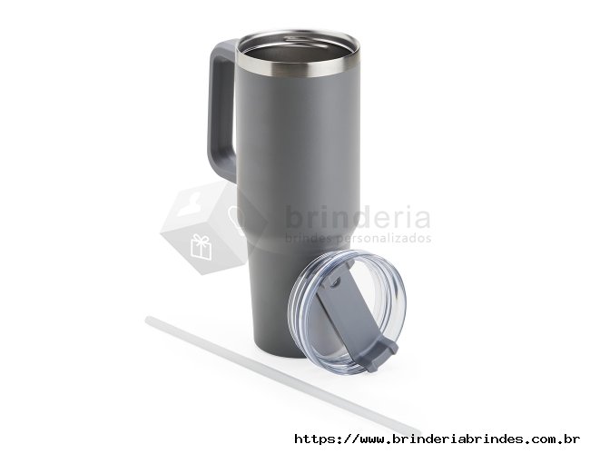 Caneca térmica com capacidade de 1,2 litros feita em inox 304 com parede dupla, contém tampa acrílica rosqueável com acesso para canudo e pegador plástico. Acompanha canudo plástico.