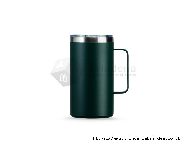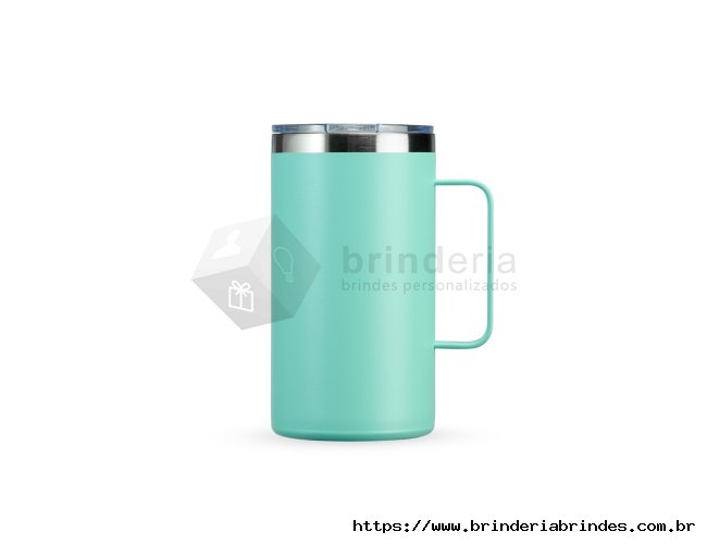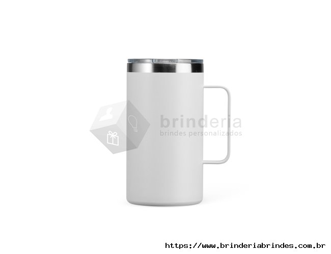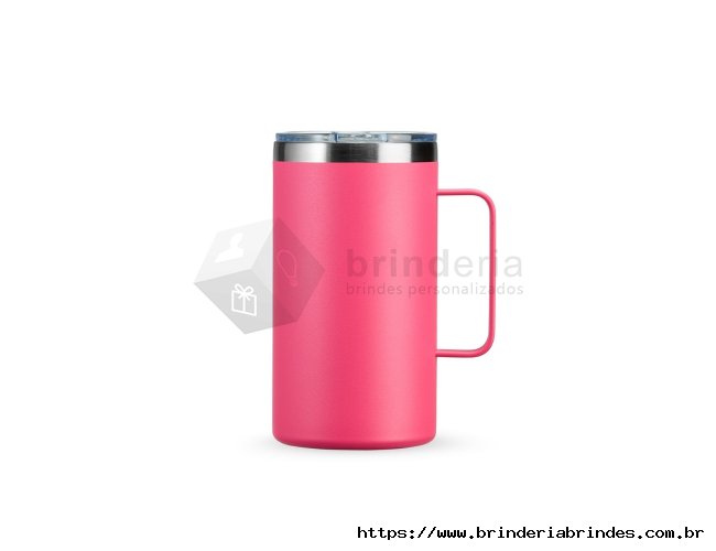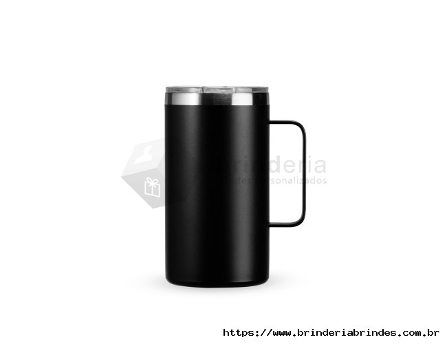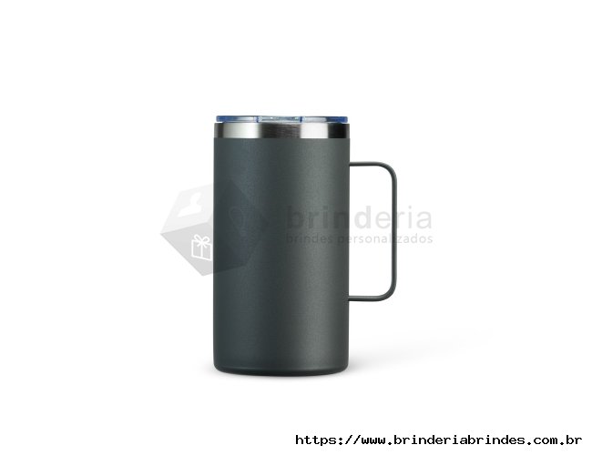 Caneca térmica em inox livre de BPA com pintura eletrostática e capacidade de até 500ml. Apresenta estrutura de parede dupla e vedação a vácuo, permitindo a conservação da temperatura de líquidos por mais tempo. Possui tampa em plástico com proteção para o bocal.