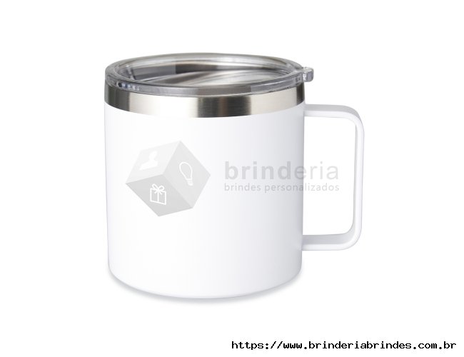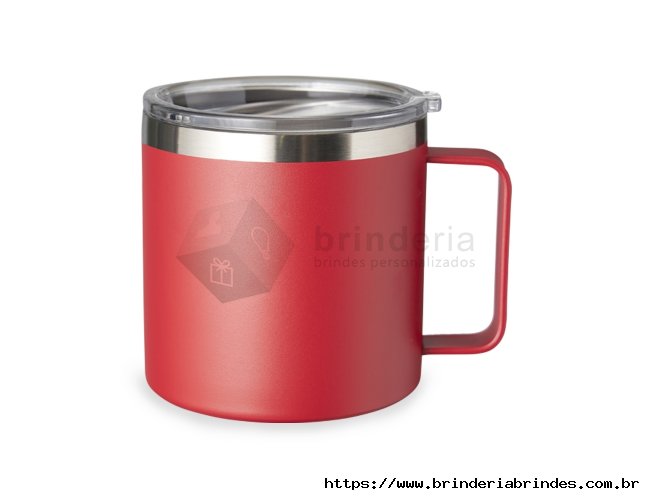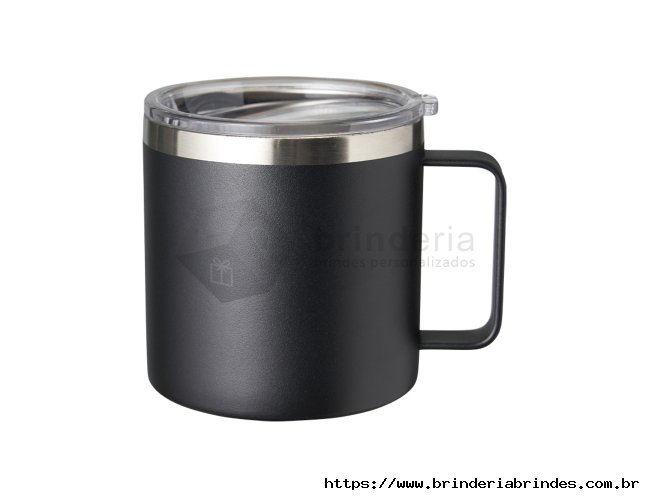 Caneca térmica de inox 450ml com parede dupla e tampa com acesso ao bocal.