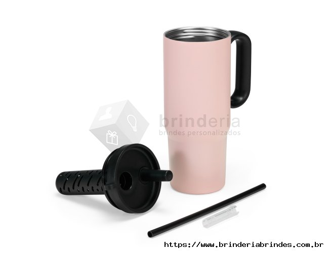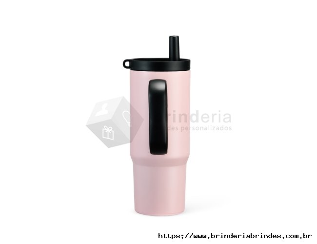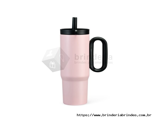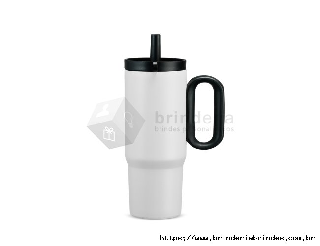 Caneca térmica em inox 304 com pintura eletrostática, alça lateral em plástico e capacidade de até 750ml. Conta com estrutura de parede dupla e vedação a vácuo para manter a temperatura de líquidos por mais tempo. Possui tampa plástica rosqueável com acesso para canudo, infusor removível e alça para fixação de chaveiro ou gancho. Acompanha canudo plástico para encaixe.