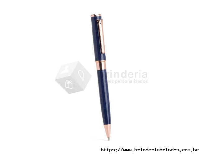 Caneta esferográfica de carga azul de 1.0mm com acionamento por rotação e construção totalmente em metal, que proporciona uma pegada confortável para uma escrita mais precisa.