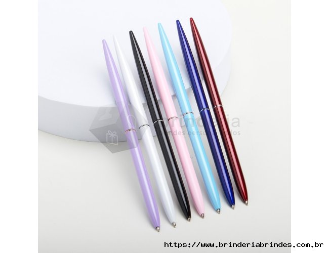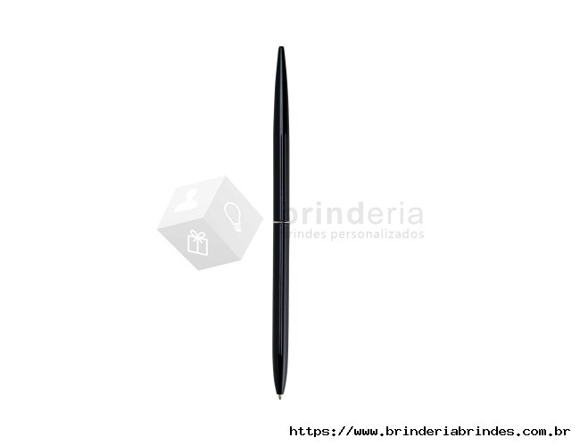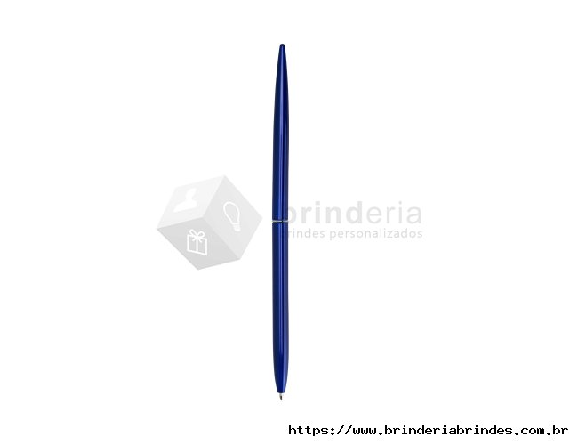 Caneta metálica com acionamento por rotação e carga esferográfica azul 1mm.