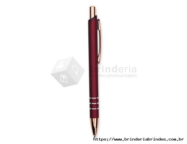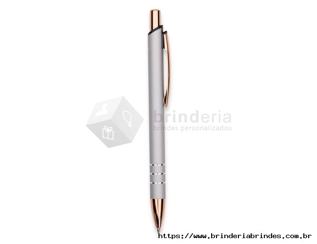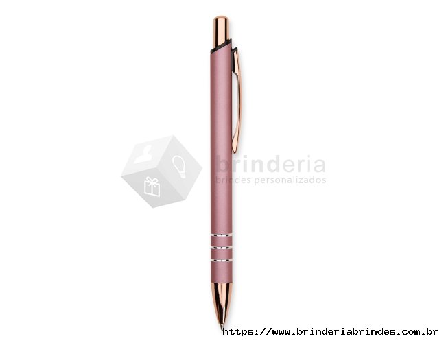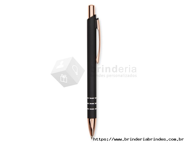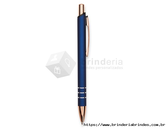 Caneta metálica com acionamento por clique e carga esferográfica azul de 1,0mm, oferecendo uma pegada leve para uma escrita mais precisa.