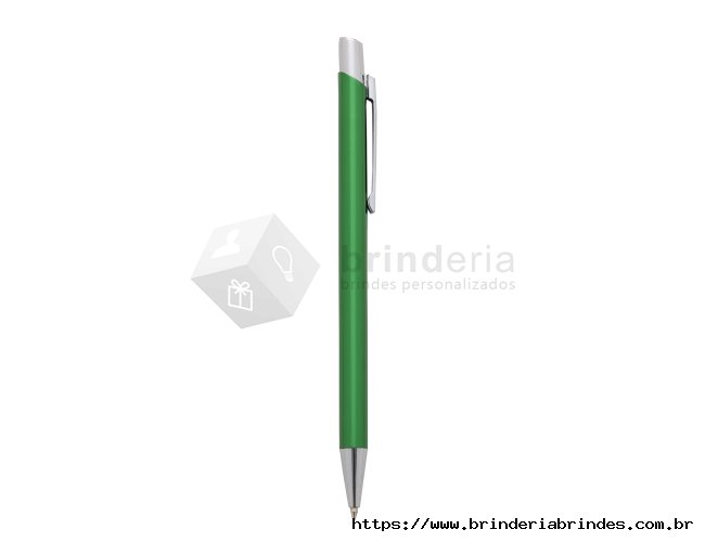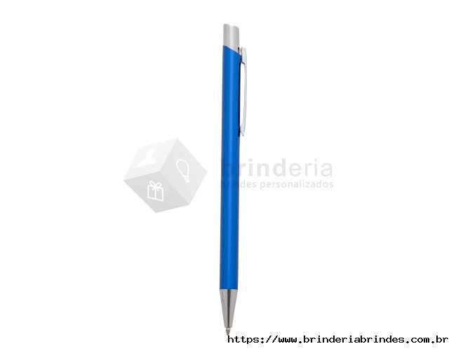 Caneta metálica com carga esferográfica azul 1.0 mm e acionamento por clique.