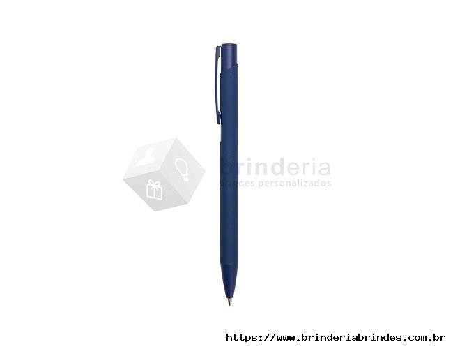 aneta metálica com ponta e clip em plástico. Possui acionamento por clique e carga esferográfica azul de 1.0mm.