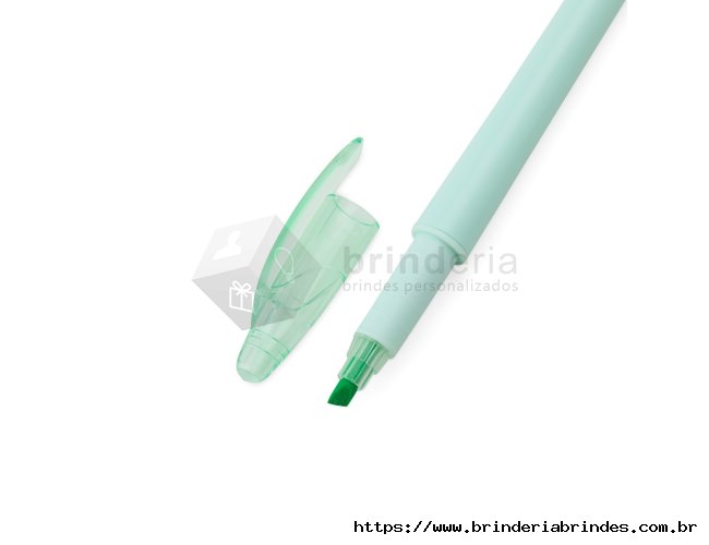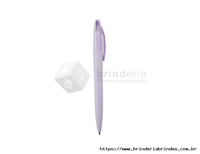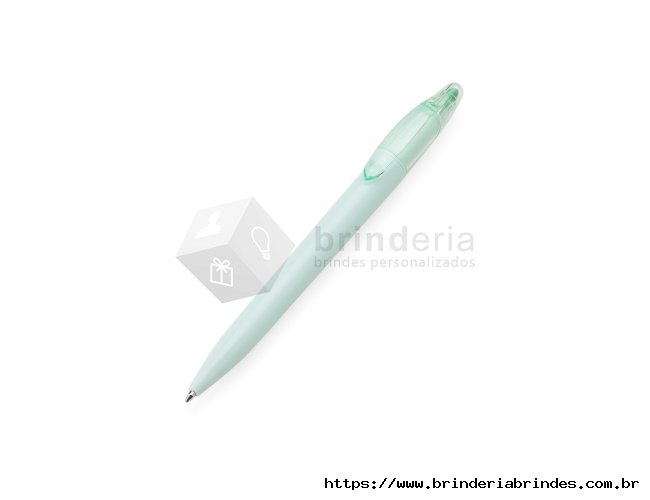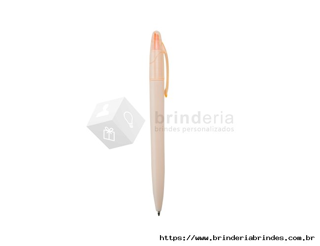 Caneta plástica com marca texto com tampa protetora para o marca texto, carga esferográfica azul 1.0mm e acionamento por rotação.