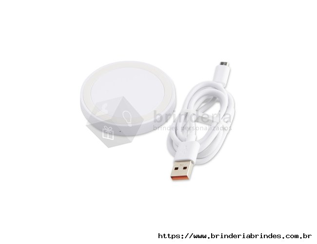 Carregador via indução formato disco com indicador de funcionamento em led, feito em plástico ABS. Acompanha cabo USB. OBS.: O CARREGADOR APENAS TRANSFERE CARGA, ELE NÃO POSSUI BATERIA PARA ARMAZENAMENTO (NÃO É UM POWER BANK).