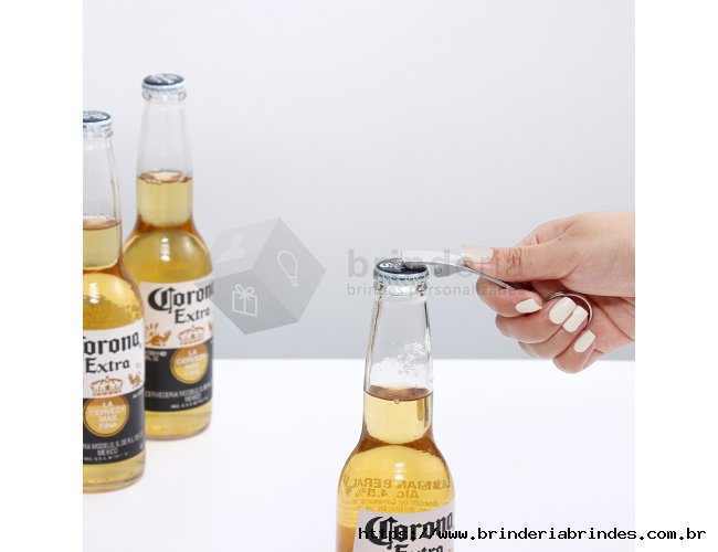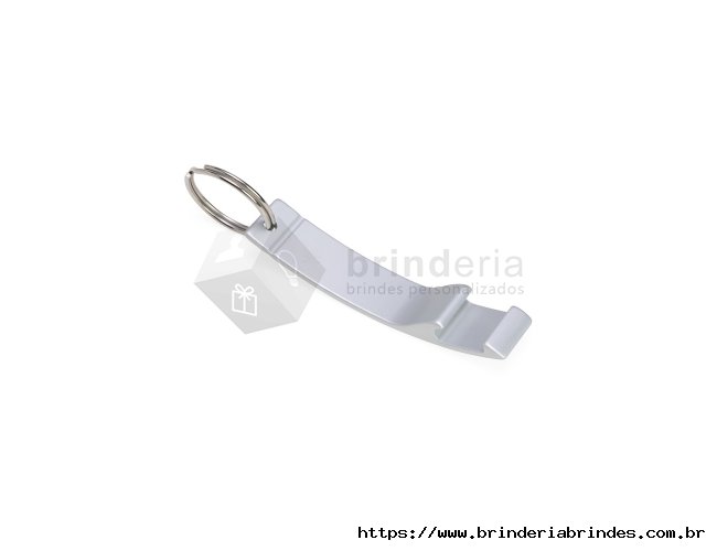 Chaveiro abridor metálico com acabamento fosco.