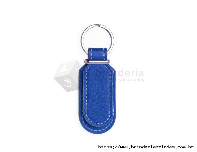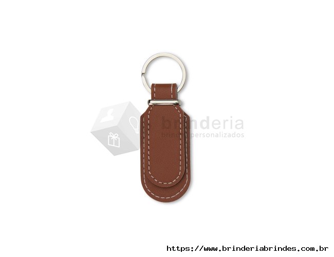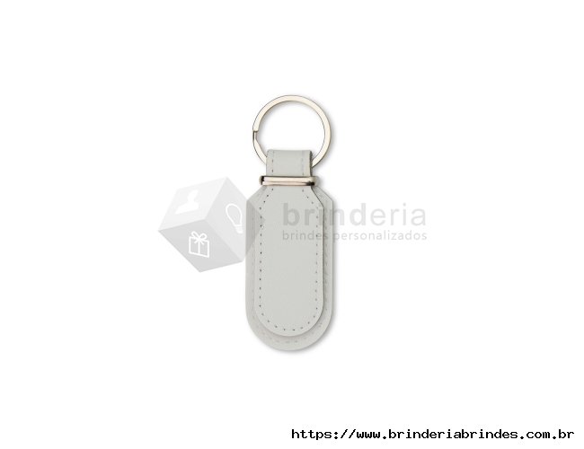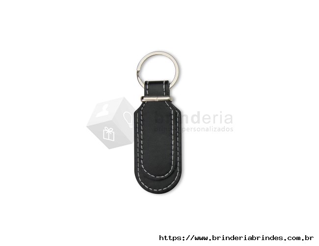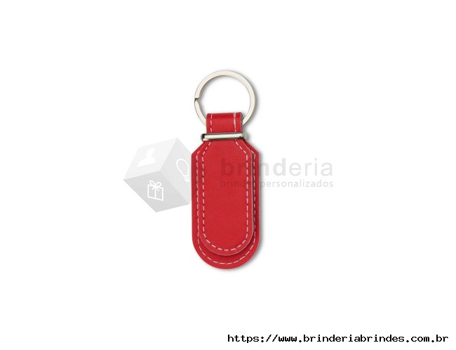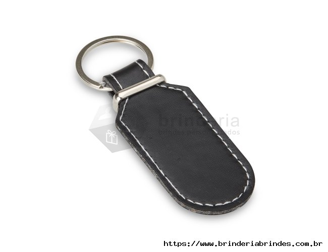 Chaveiro em formato minimalista em couro sintético com frente e verso lisos e argola de ferro niquelado.
