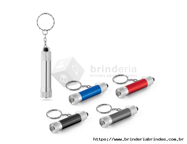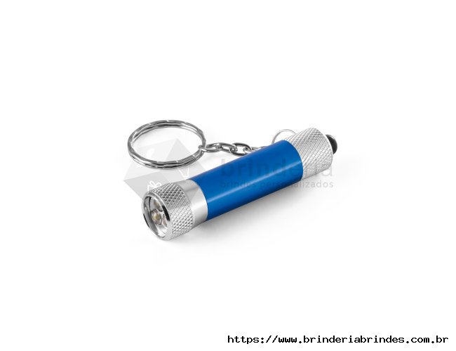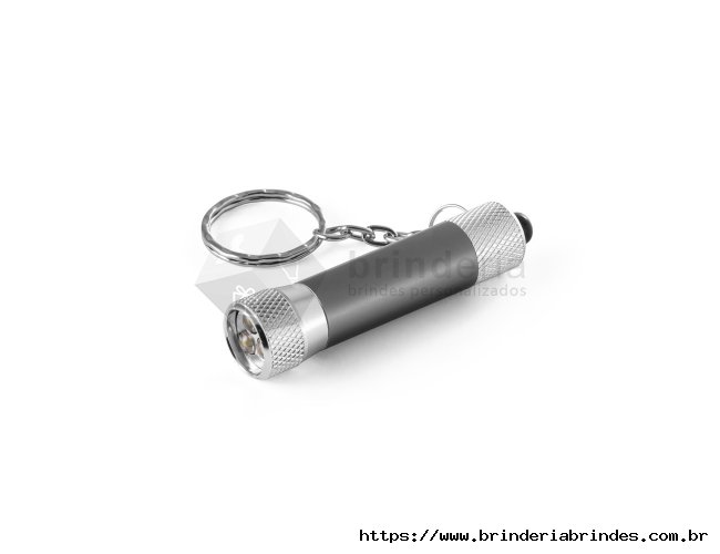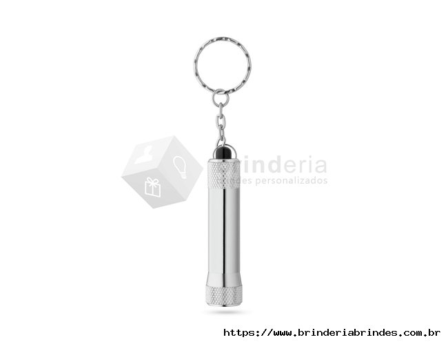 Chaveiro em alumínio com lanterna de 3 luzes LEDs. Incluso 4 pilhas LR44. ø17 x 62 mm