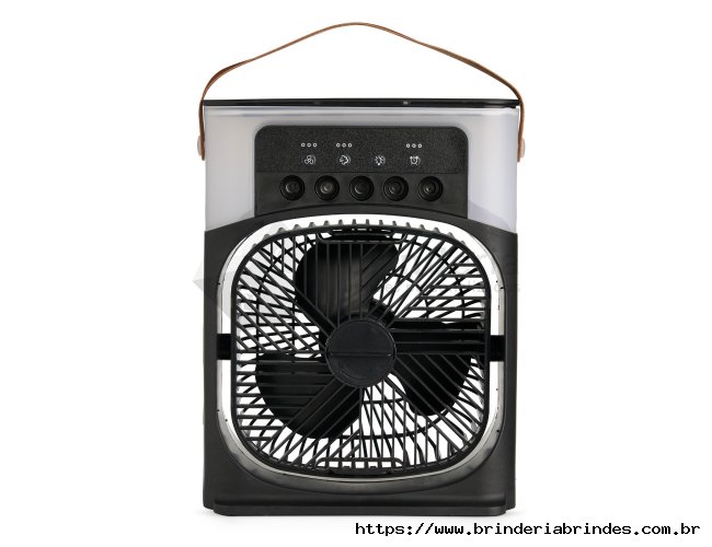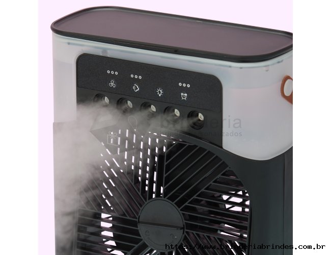 Climatizador de mesa com reservatório de água com capacidade de 600ml. Possui 3 intensidades de ventilação, 3 ajustes de saída de ar do umidificador, ajuste vertical manualmente da direção do fluxo de ar, temporizador (1, 3, 5 horas) 7 luzes de led multicoloridas. Na parte central do climatizador contém espaço com trava para colocar filtro e adicionar gotas de óleo essencial. Possui alça de couro e cabo USB TYPE C. Obs. Certifique-se de que a corrente de saída da fonte de alimentação é maior ou igual a 2A e 10W, fonte de alimentação inferior levará o funcionamento de energia insuficiente.