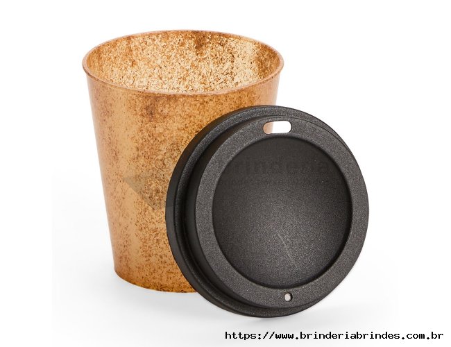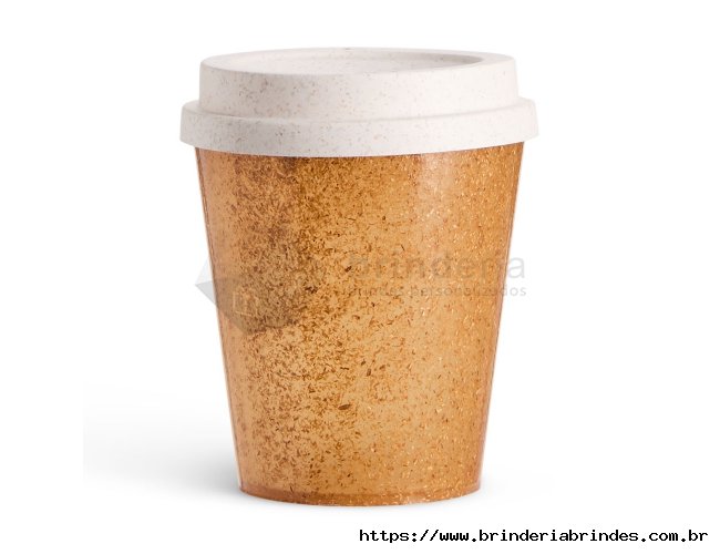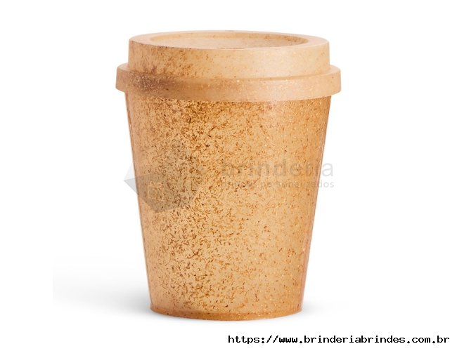 Copo feito em fibra de coco com capacidade de até 350ml. Possui tampa plástica com bocal.