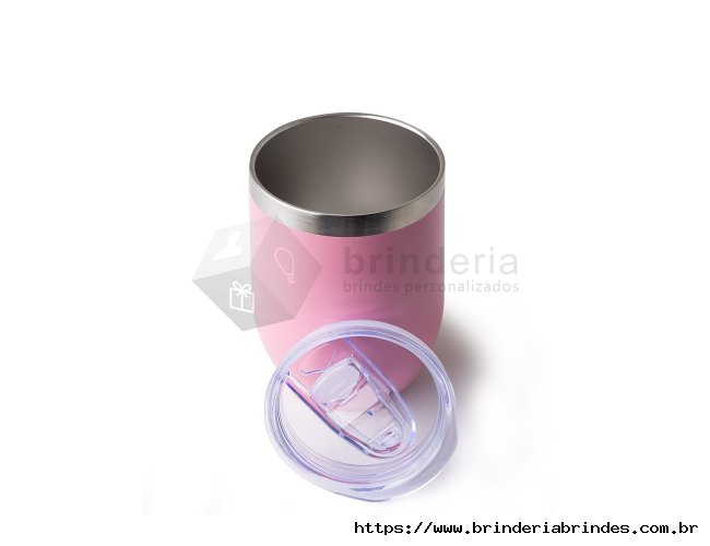 Copo térmico 320ml de parede dupla em inox livre de BPA, contém tampa com bocal e trava de segurança.