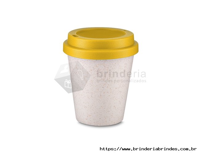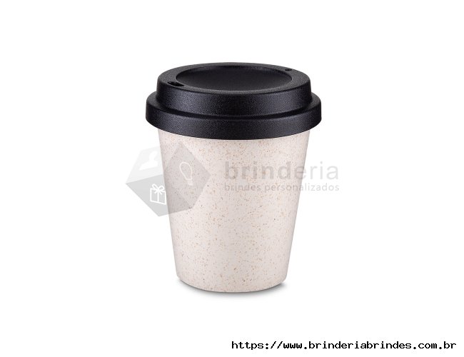 Copo fibra de arroz 350ml com tampa plástica de bocal.