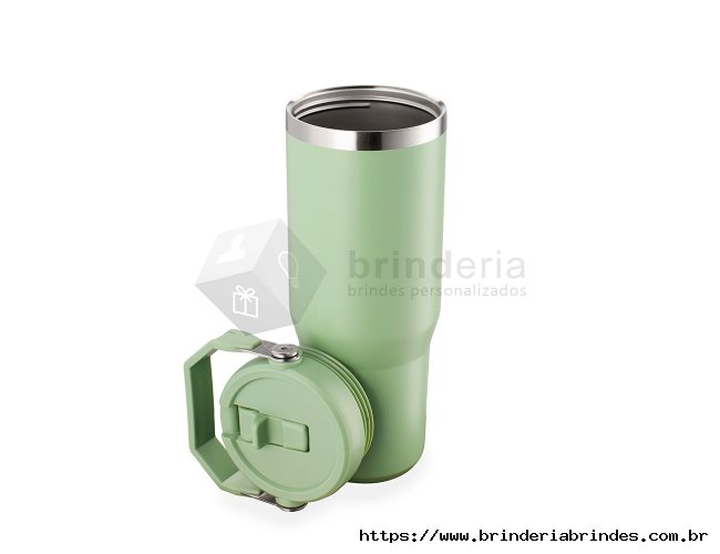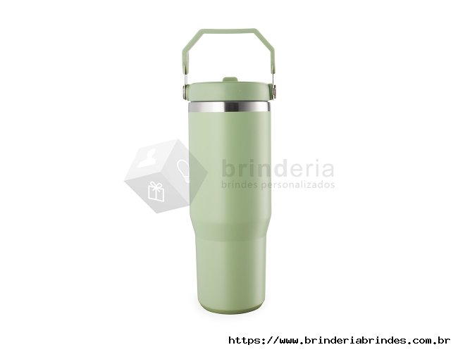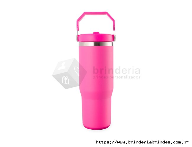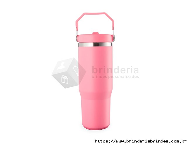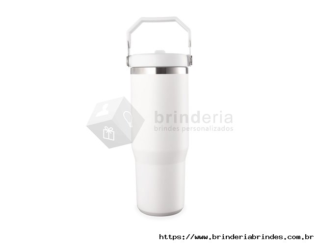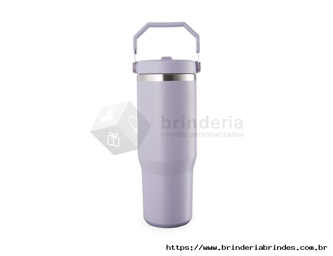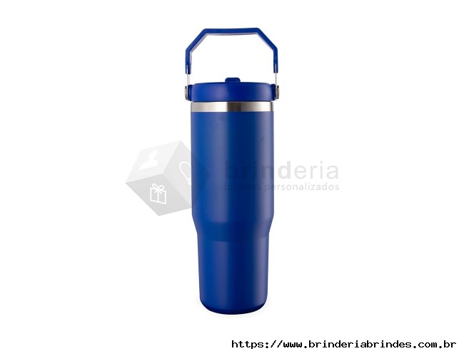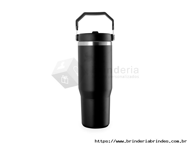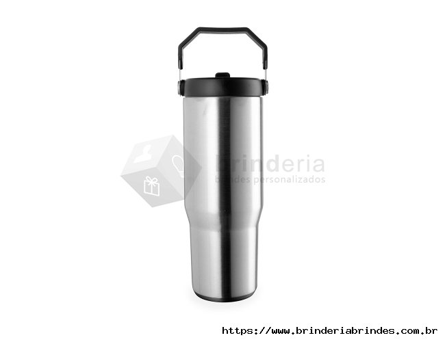 Copo térmico inox com a capacidade máxima de 800ml. Apresenta estrutura em parede dupla, tampa plástica rosqueável com vedação a vácuo com alça fixa em inox e uma camada em plástico, além de bico flexível. Acompanha canudo plástico para encaixe interno.