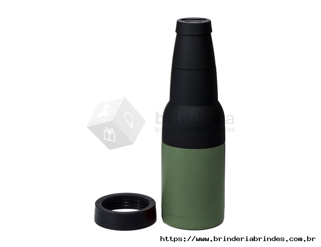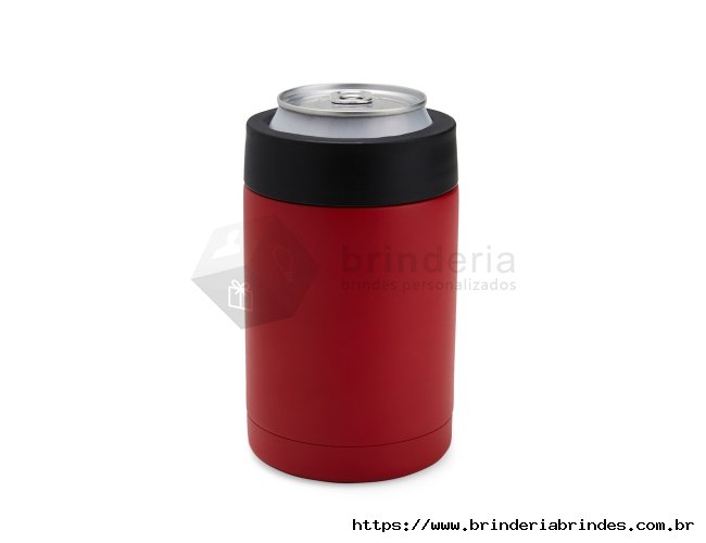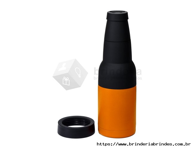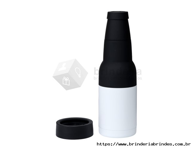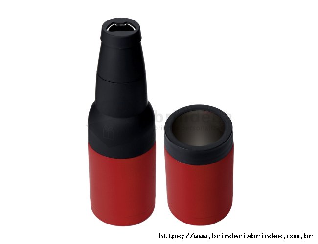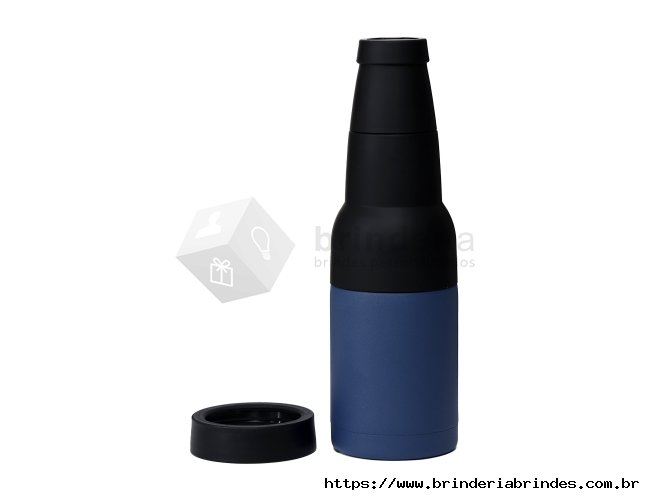Copo térmico multiuso em inox e plástico, pode ser usado como porta long neck ou porta lata, possui abridor de garrafa.