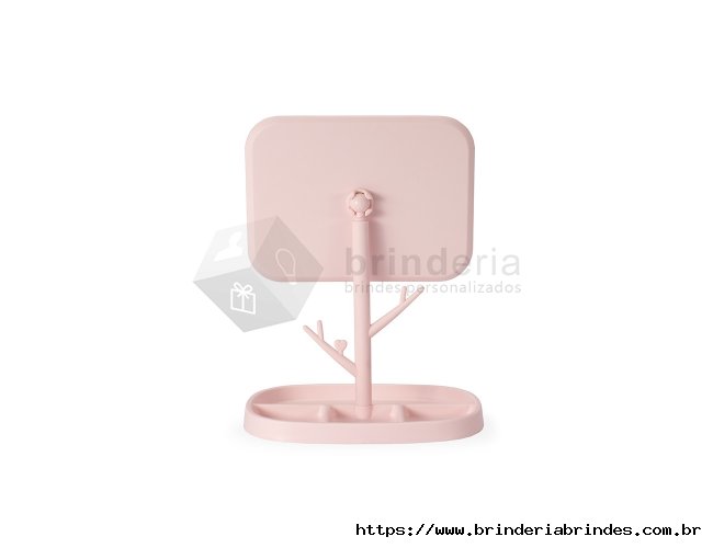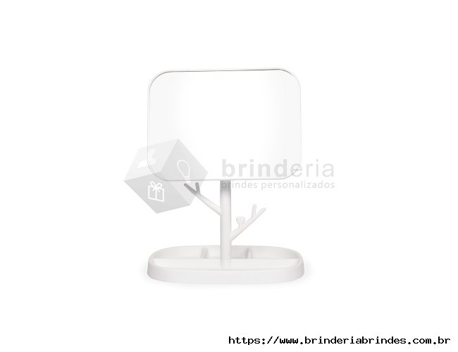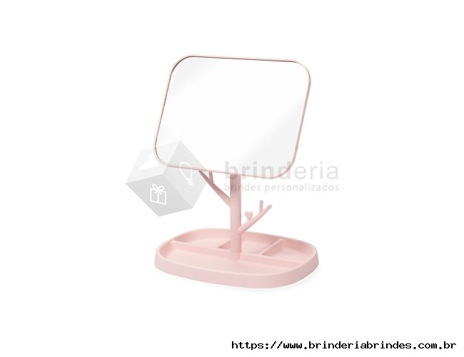 Este espelho de mesa em formato retangular é uma opção funcional e elegante com estrutura em plástico de fácil montagem. Seu pedestal giratório permite o ajuste do espelho em diferentes ângulos e posições. Além disso, contém ganchos laterais e quatro divisórias na base para organizar objetos, ampliando a sua versatilidade.