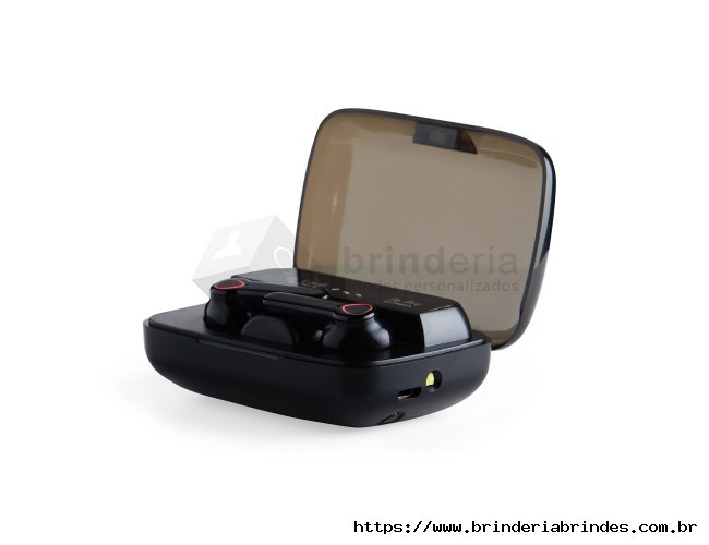 Fone de ouvido bluetooth com comandos touch e case carregador. Com lanterna e display de bateria, o case pode ser utilizado também como um power bank de baixa capacidade para emergências. Material plástico. Acompanham 2 pares de eartips em diferentes tamanhos, lanterna, alça e cabo USB.