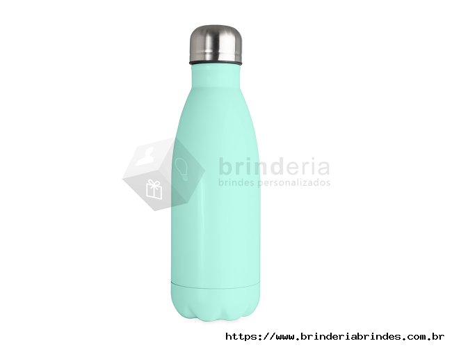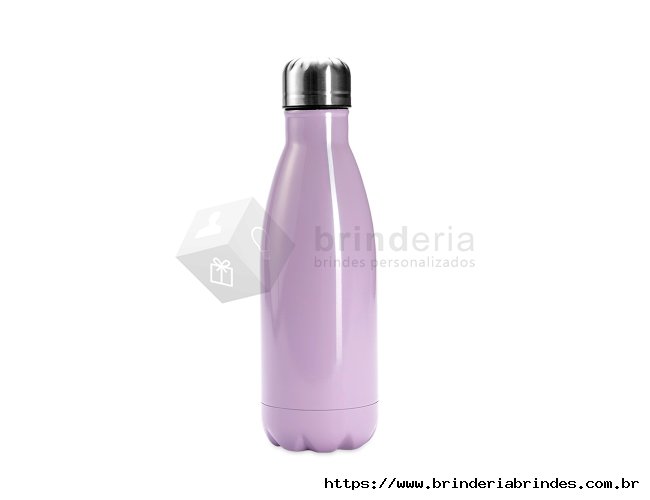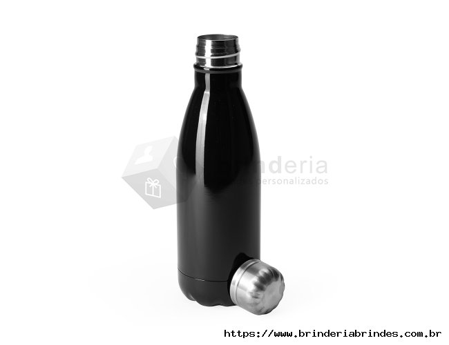 Garrafa 650ml em inox com tampa rosqueável e pintura brilhante. Obs.: Não é um modelo térmico.