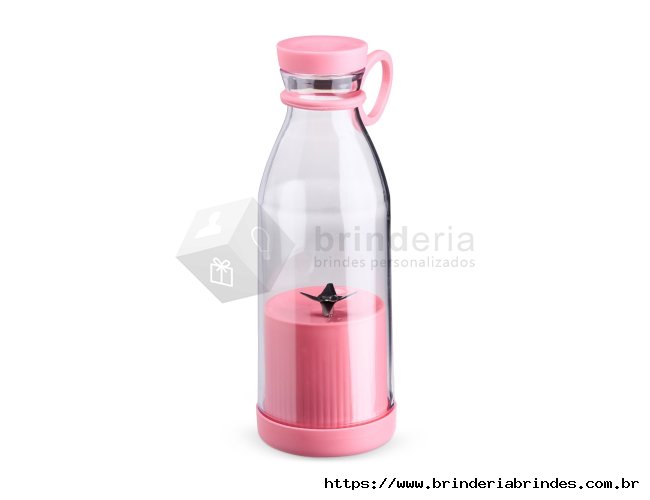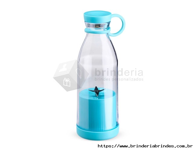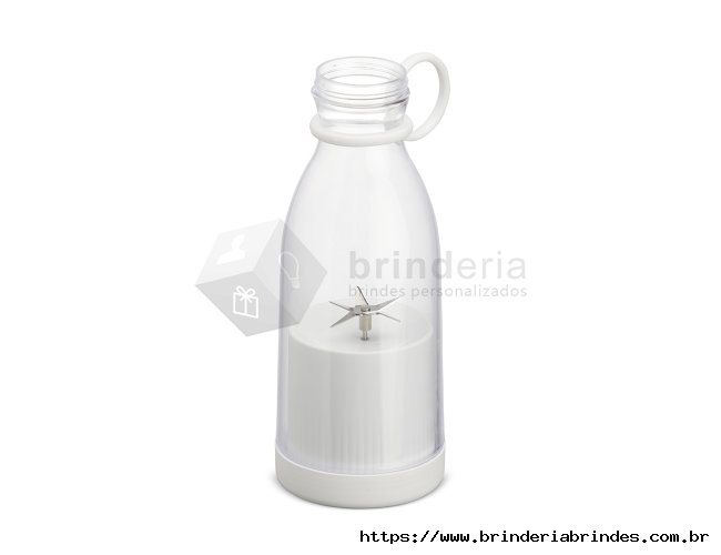 Mini liquidificador portátil com capacidade de 380ml. Contém tampa rosqueável plástica com alça emborrachada para transporte, ventoinha inox 6 lâminas e base plástica com borrachas antiderrapantes. Acompanha cabo USB. Obs. (Para o funcionamento do produto a quantidade total de frutas/água adicionadas não deve exceder 300ml).