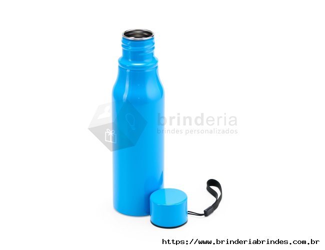 Garrafa inox com capacidade de 750ml. Contém tampa rosqueável com alça para transporte.