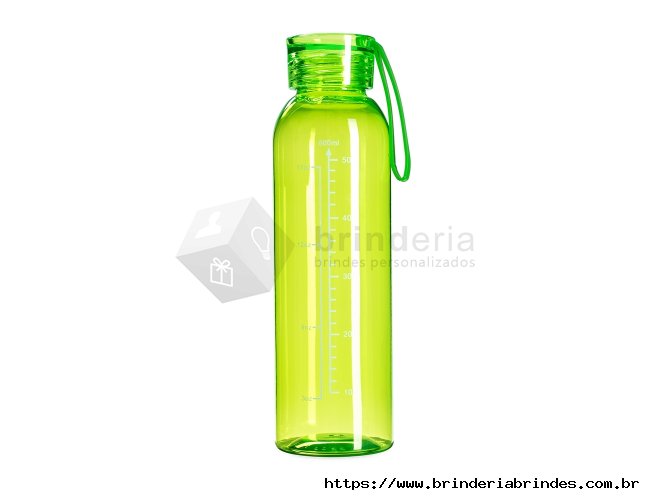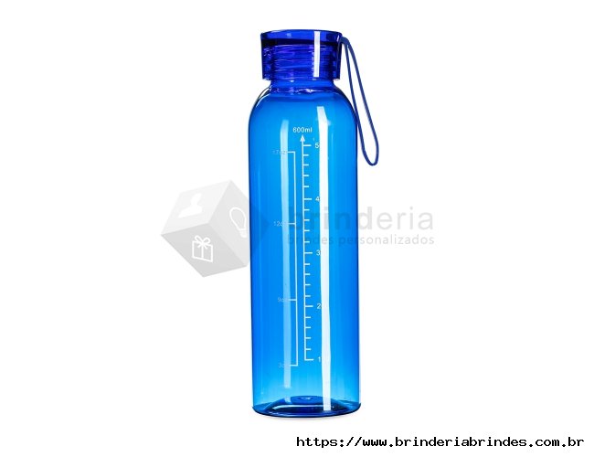 Garrafa feita em plástico livre de BPA com capacidade máxima de 640ml e marcação de volume impressa de até 600ml. Conta com tampa plástica rosqueável com alça de silicone fixa.