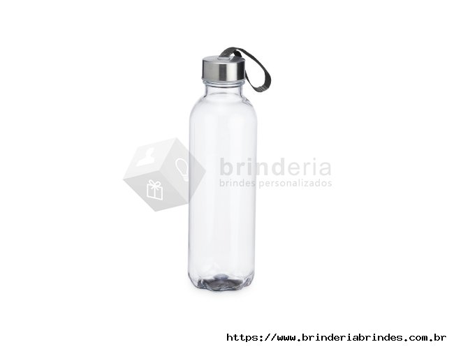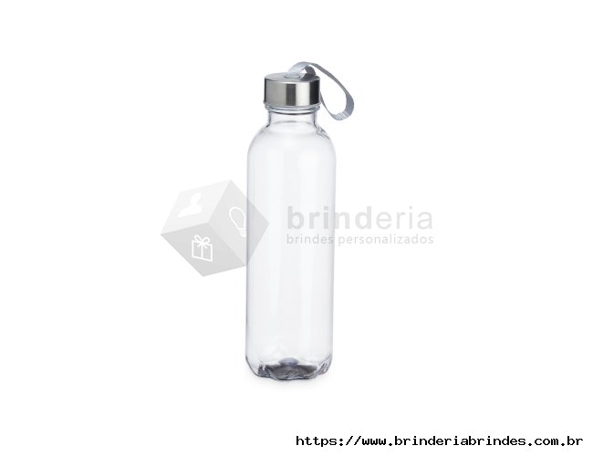 Garrafa PET 650ml com tampa de alumínio e alça para transporte embutida.