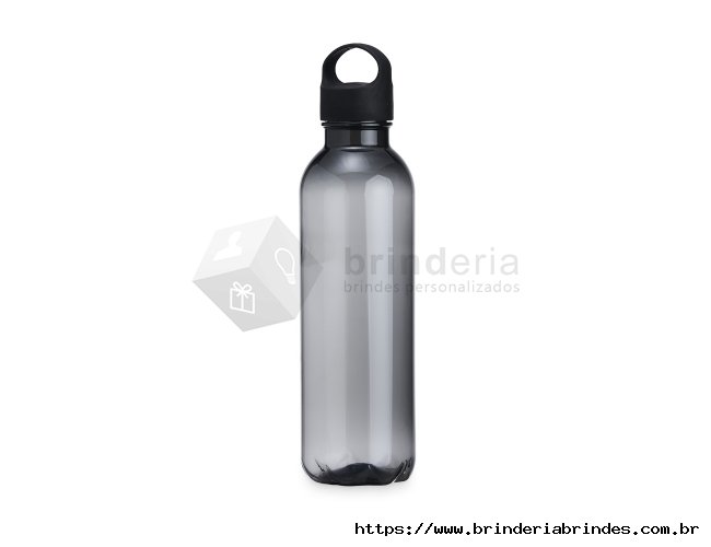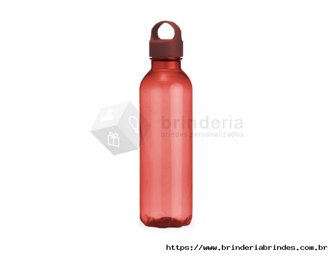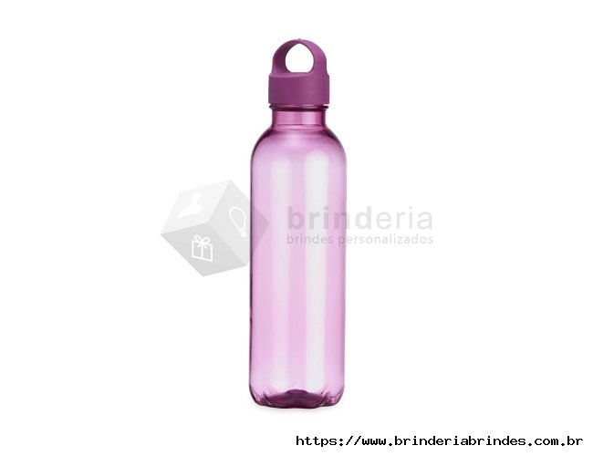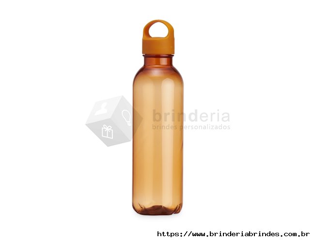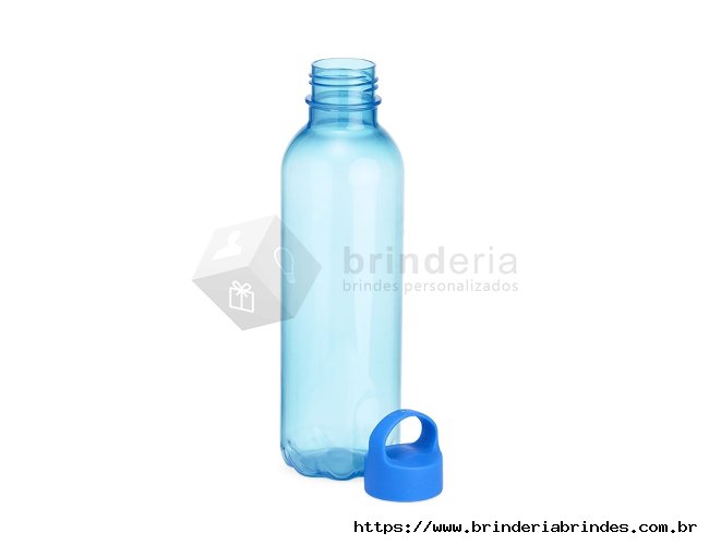 Garrafa PET 650ml com tampa plástica e alça para transporte.