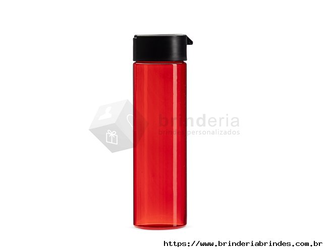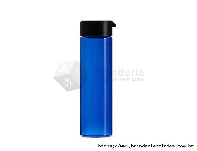 Garrafa plástica em formato cilíndrico com capacidade para até 700ml. Possui tampa rosqueável com alça circular para transporte.