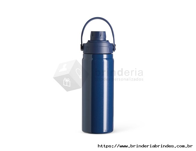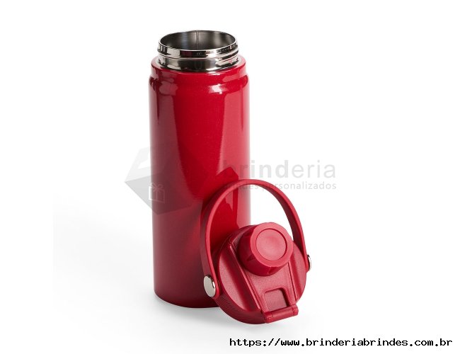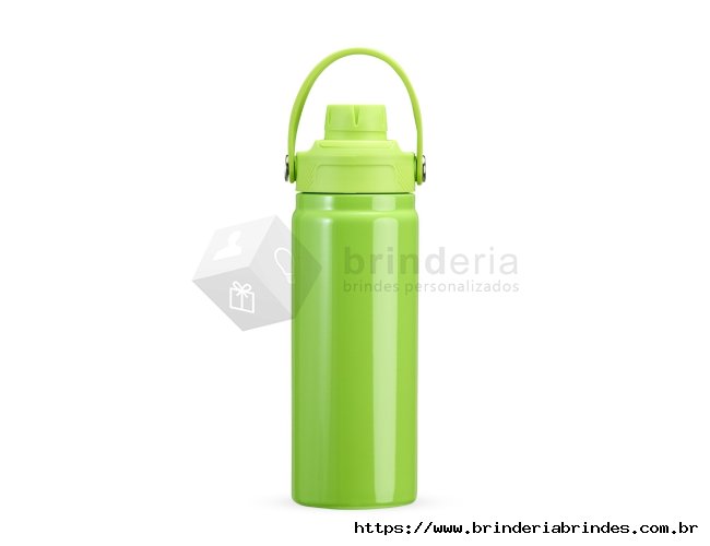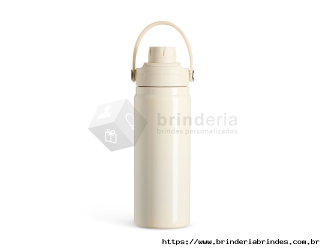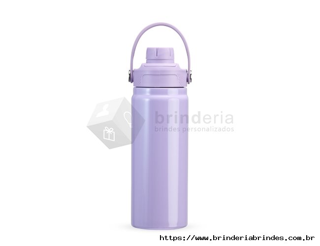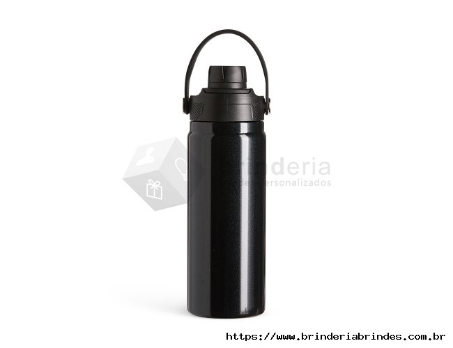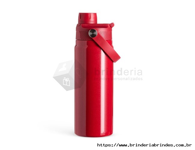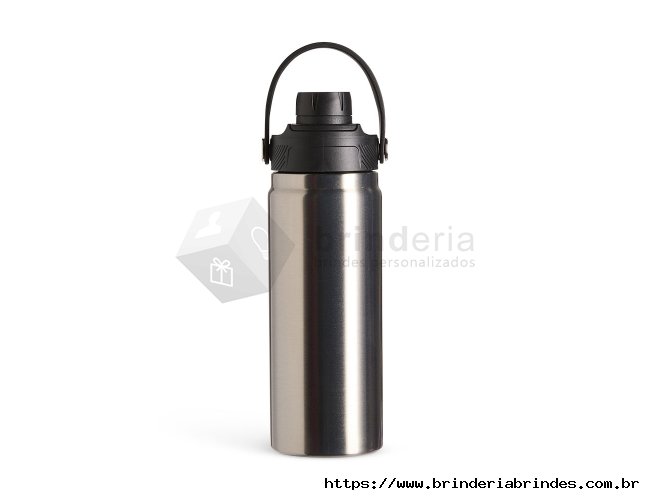 Garrafa térmica em inox com capacidade de até 600ml. Apresenta estrutura com parede dupla e isolamento a vácuo, permitindo conservar a temperatura de líquidos por mais tempo. Possui tampa plástica rosqueável com proteção para o bocal e alça fixa para transporte.