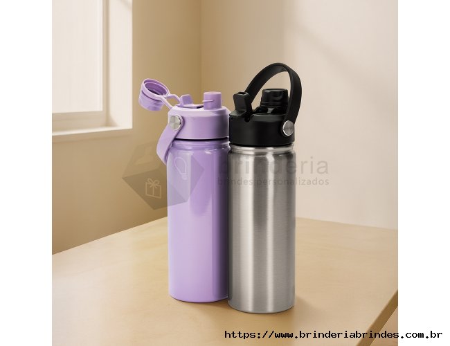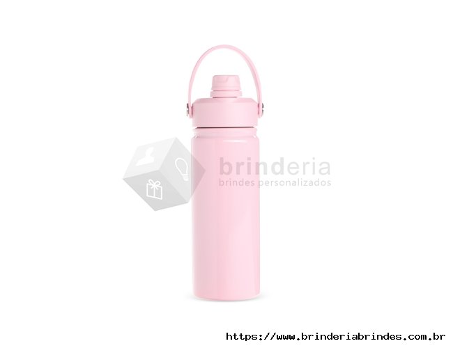 Garrafa térmica em aço inox 304 e capacidade para até 600ml. Apresenta estrutura de parede dupla e vedação a vácuo, oferecendo a conservação da temperatura de líquidos por mais tempo. Possui tampa rosqueável feita em plástico com proteção para o bocal, bico flip, canudo interno removível e alça fixa para transporte.
