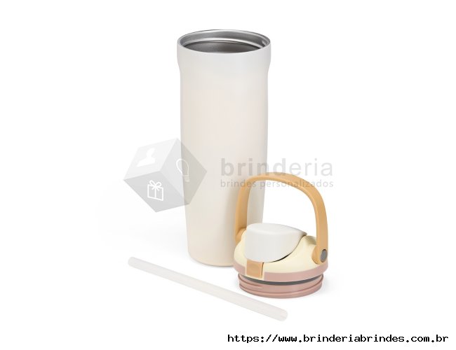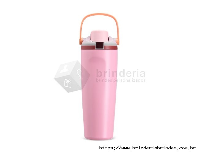 Garrafa térmica em inox com capacidade para até 850ml. Conta com estrutura de parede dupla e vedação a vácuo, ajudando a conservar a temperatura dos líquidos por mais tempo. Possui tampa rosqueável em plástico com protetor para o bocal, botão de acionamento, trava de segurança e alça de mão para transporte. Acompanha canudo para encaixe interno na tampa.