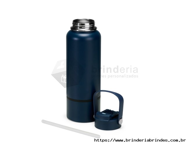Garrafa térmica em inox com pintura eletrostática e capacidade de até 800ml. Apresenta estrutura interna de parede dupla e vedação a vácuo, o que ajuda a conservar a temperatura de líquidos por mais tempo. Conta ainda com fundo removível. Possui tampa plástica rosqueável com protetor para o bocal, bico flip, canudo interno removível e alça fixa para transporte.