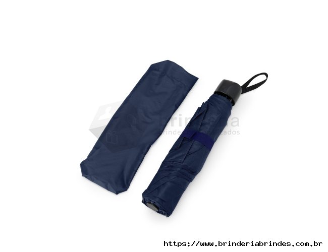 Guarda-chuva manual de tecido em nylon. Possui 7 varetas e estrutura em aço, pegador, botão de abertura e alça de nylon. Acompanha capa protetora.