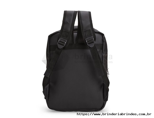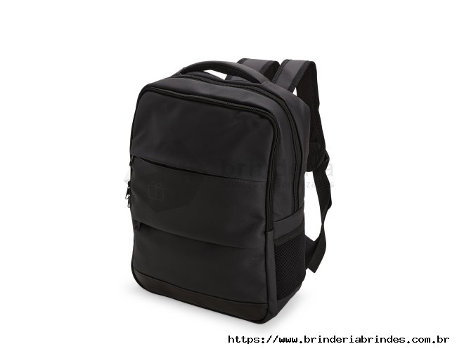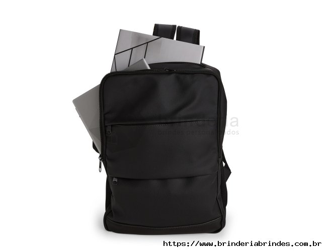 Mochila confeccionada em couro sintético com capacidade máxima de 20 litros. Possui compartimento principal com divisória em malha para notebooks de até 15,6 polegadas. Conta ainda com três compartimentos frontais em tamanhos diferentes, além de dois bolsos em tecido respirável, o mesmo material de revestimento das alças para as costas e alça superior de mão.