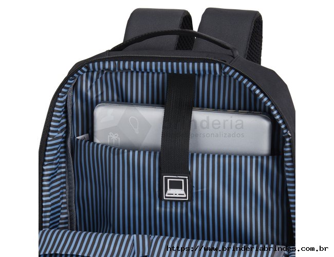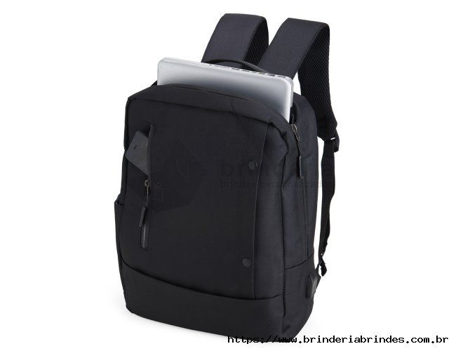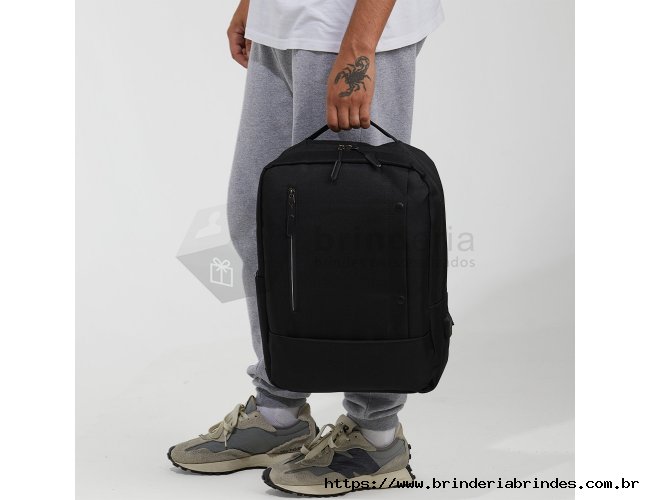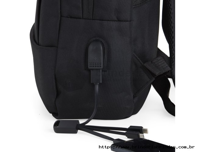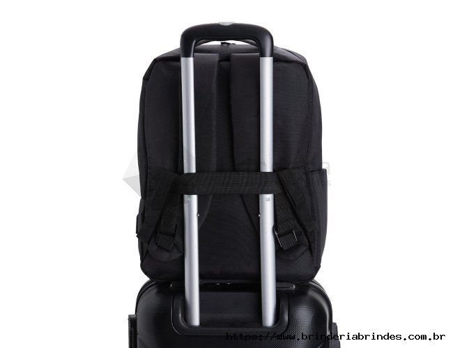 Mochila de Nylon 22 Litros com 4 compartimentos, sendo o principal com bolso para notebook 15,6. Com divisórias internas para acessórios, a mochila possui bolso lateral, suporte externo USB e alça para engate em malas de viagem.