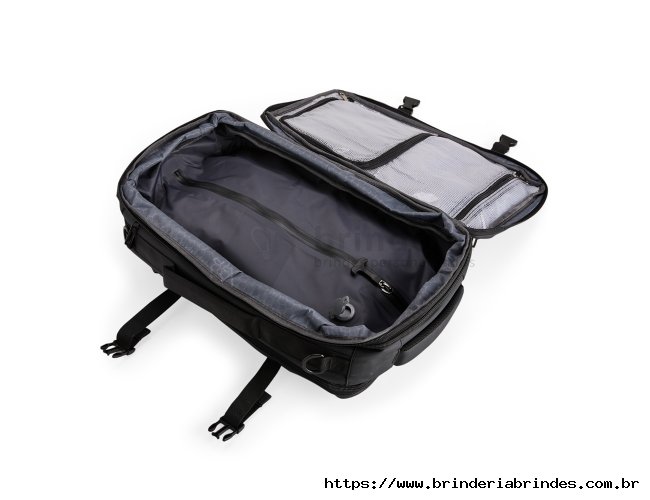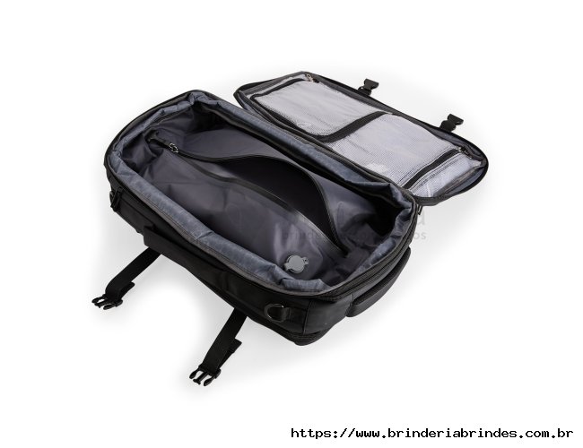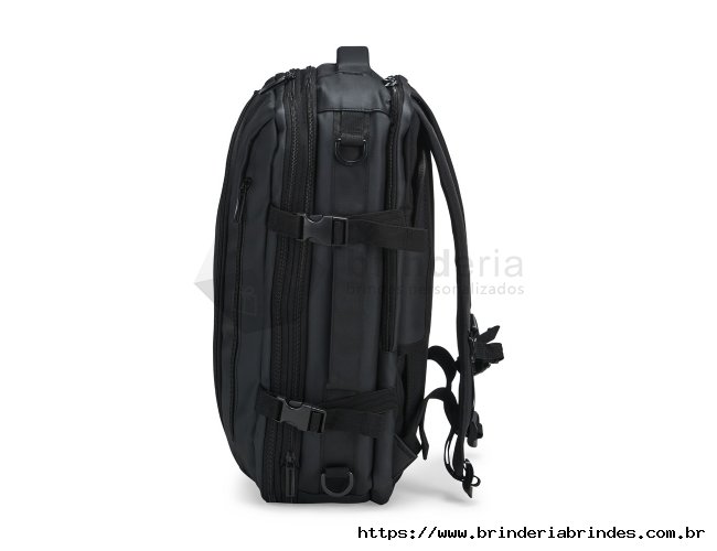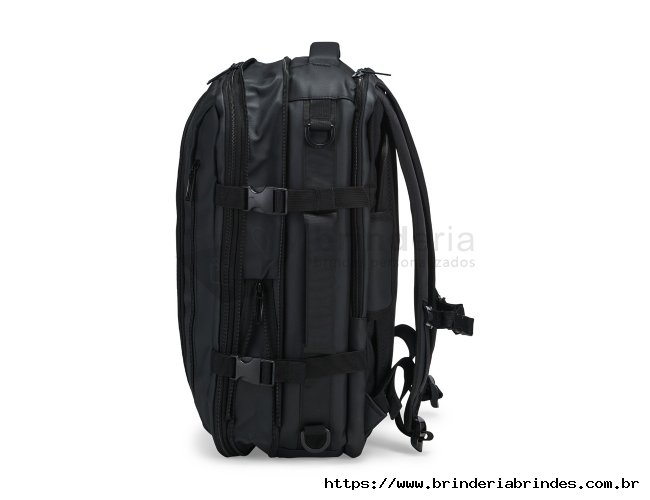 Mochila em nylon com uma camada de PU impermeável com capacidade máxima de 28 litros. Possui um compartimento interno a com sistema de vedação vácuo para guardar roupas e outros objetos (bomba compressora não incluído) e duas divisórias em poliuretano termoplástico de tamanhos diferentes, além de bolsos frontais, um lateral em tela e outro traseiro com divisória para notebook de até 15,6 polegadas. Dispõe ainda de alças acolchoadas em espuma respirável, uma alça lateral para transporte horizontal e outra para ombro ajustável em nylon.